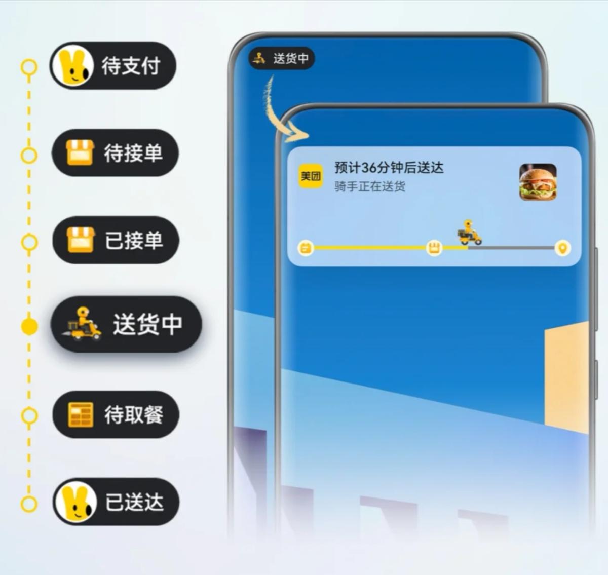最先打破我顧慮的,是那個(gè)叫“實(shí)況窗”的功能。以前每次點(diǎn)外賣,都要反復(fù)解鎖、切換App,生怕錯(cuò)過(guò)配送信息。現(xiàn)在好了,外賣送到哪了、還有多久到,這些信息都會(huì)直接浮現(xiàn)在屏幕上方,即將送達(dá)時(shí)會(huì)自動(dòng)彈窗提醒,根本不用離開當(dāng)前應(yīng)用。有了這個(gè)功能,在刷視頻的時(shí)候無(wú)需專門去App查看配送狀態(tài),包括外出打車時(shí),也沒必要始終盯著打車App界面,完全可以干點(diǎn)別的來(lái)打發(fā)等車時(shí)間。
