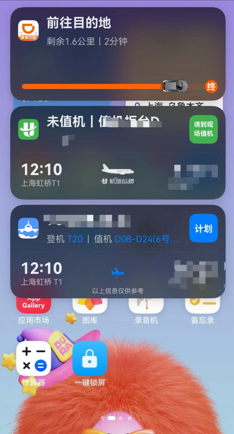 我平時(shí)出差還是比較多的,有一次趕早班飛機(jī),提前三個(gè)小時(shí)手機(jī)就彈出了航班提醒,顯示登機(jī)口和起飛時(shí)間。我點(diǎn)一下實(shí)況窗,就能查看詳細(xì)信息,再點(diǎn)一下就跳轉(zhuǎn)到了航旅縱橫App,整個(gè)過(guò)程一氣呵成。