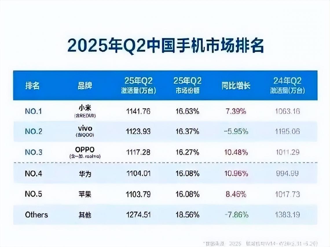 2025年Q2中國手機出貨量暴跌4%,華為意外重回第一寶座,小米成唯一增長玩家,這波價格戰贏了用戶卻輸了市場信心?