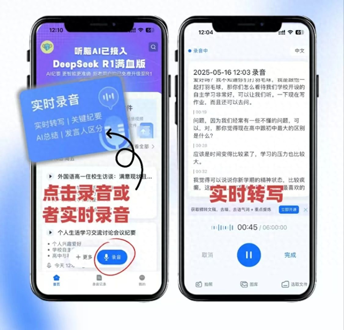 再上點硬數據,對比著看更清楚。轉寫準確率:聽腦AI普通話98.3%,方言平均91.7%;某頭部競品普通話95.1%,方言只有78.4%。實時轉寫速度:我說一句話,0.8秒手機上就能看到文字,某競品得等1.5秒,開會時leader語速快,經常句子說到一半,競品才顯示前半句,根本跟不上思路。支持場景方面,聽腦AI分了“會議模式”“課堂模式”“訪談模式”“創作模式”,每個模式算法不一樣:會議模式會自動識別發言人,標“張總:”“李姐:”;課堂模式側重抓關鍵詞和公式;創作模式會保留語氣詞,方便寫文案時找感覺——而多數競品就一個“通用模式”,管你錄的啥,轉出來都是一堆平鋪直敘的文字。