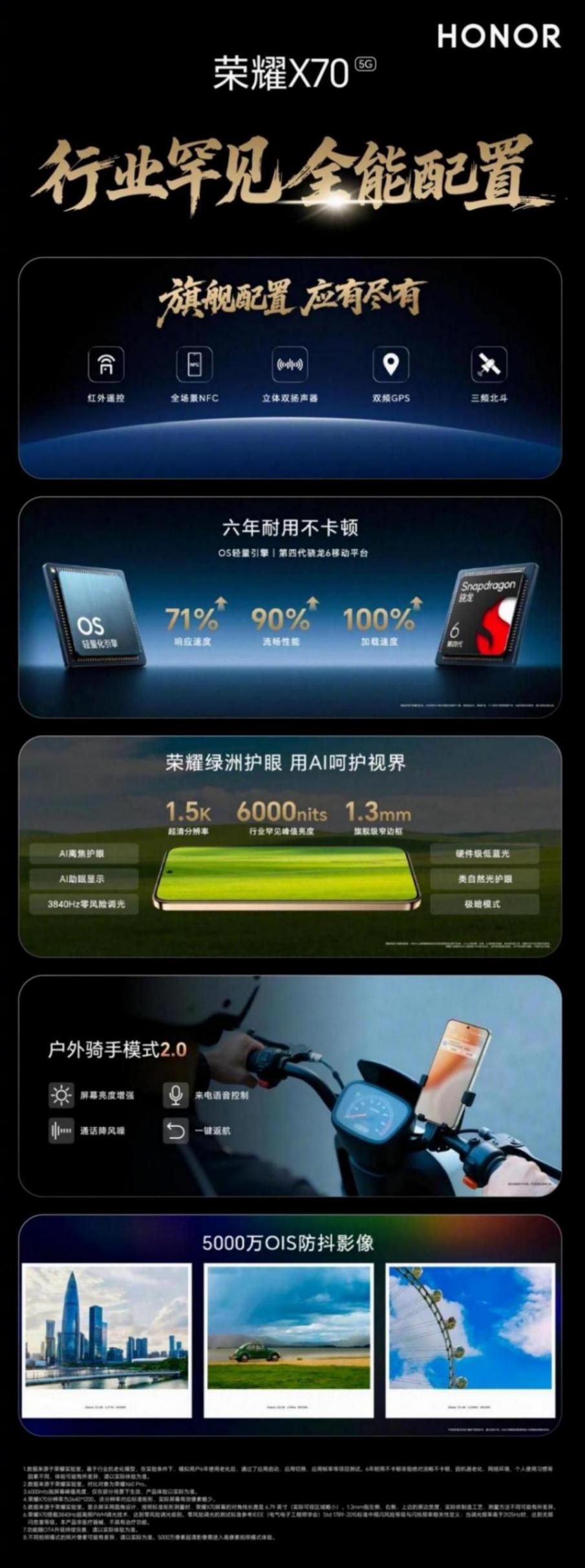 榮耀X70手機開售:行業(yè)首款金標三防抗摔認證 ,1399元起