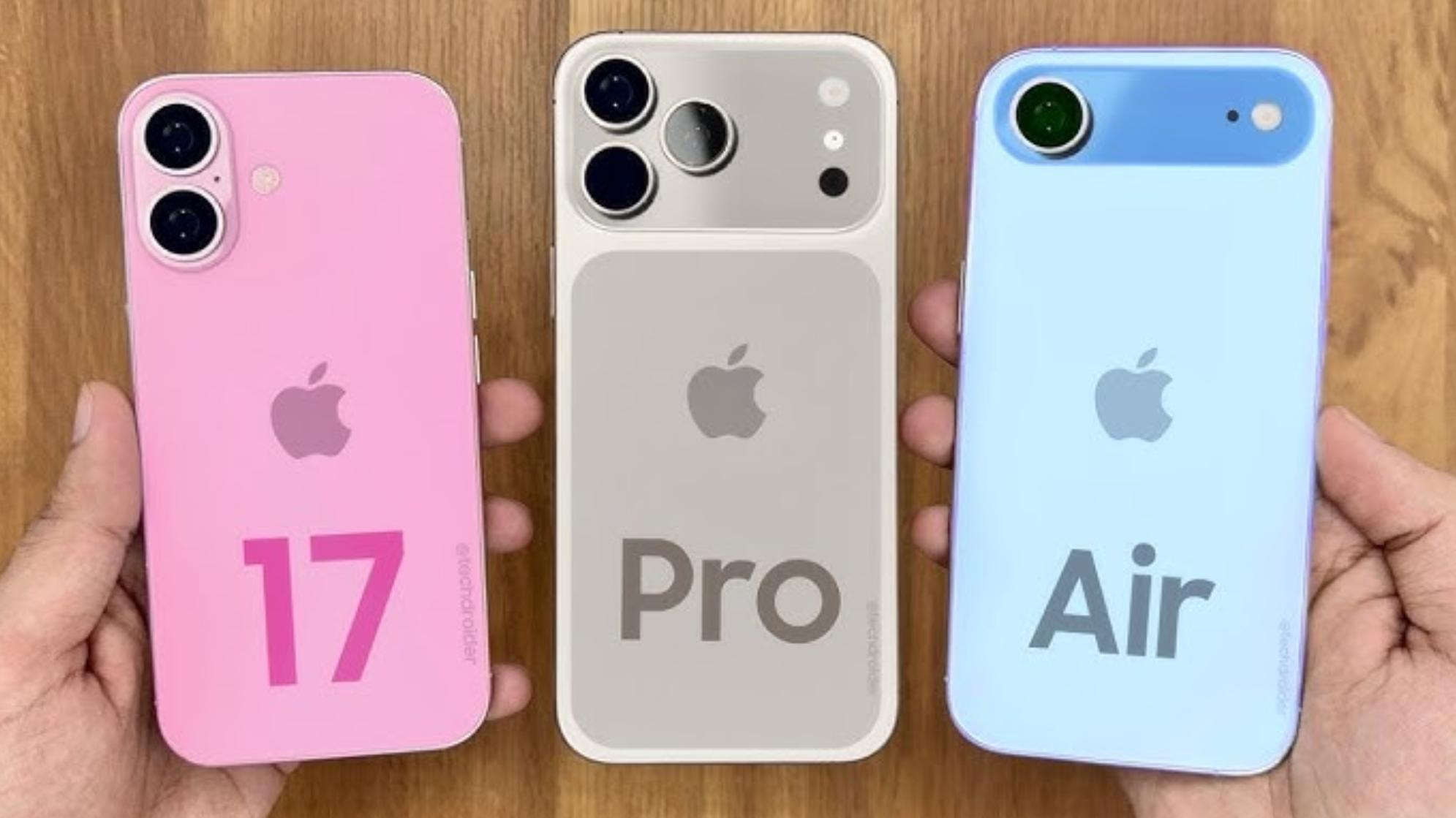 而今年的前段時間,網絡上展示出了更多iPhone 17系列的渲染圖,這次是相機陣列。在渲染圖中,可以看到iPhone 17 Pro和iPhone 17 Pro Max頂部水平排列著三攝系統。基礎款iPhone 17將保留兩個垂直攝像頭,而iPhone 17 Air將配備一個單攝像頭。馬克·古爾曼在2025年3月聲稱,iPhone 17 Air將配備一個48MP的攝像頭。