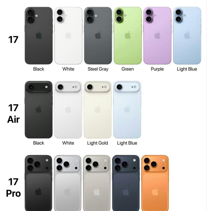 最近網(wǎng)上曝出了iPhone17四款機(jī)型的顏色,說是蘋果今年要來大招。新款手機(jī)叫iPhone17、17 Air、17 Pro和Pro Max,現(xiàn)在連顏色都給畫出來了。據(jù)說九月初就要發(fā)新品,工廠已經(jīng)開始批量生產(chǎn)了。
