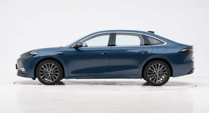 再來看一下秦L DM-i,側面線條明顯就比銀河A7復雜了不少,且溜背設計比較明顯,整體有一些前低后高的俯沖姿態。