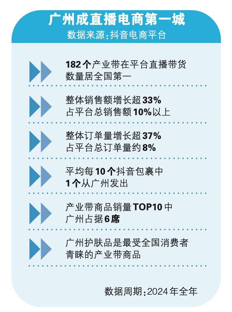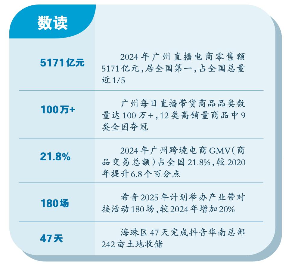 廣州市統計局數據顯示,2024年廣州直播電商零售額達5171億元;2025年上半年跨境電商貿易額突破千億元,實現兩位數增長,跑出廣州“加速度”。