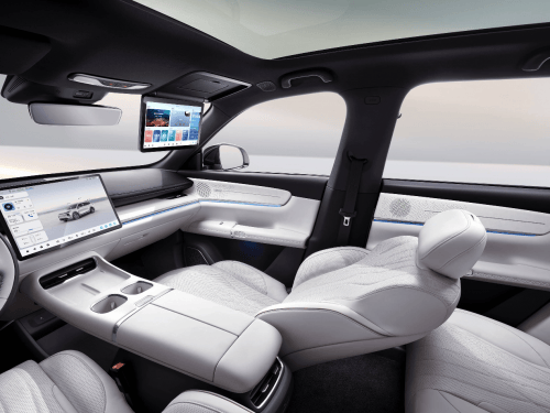 eπ008以近5米車長、3米軸距的傲人尺寸,奠定了同級空間標桿的地位。即便是六座版本,也能確保每位乘員擁有寬適的體驗,是二胎家庭的理想選擇,五座版的空間感更是游刃有余。后備廂容積巨大,輕松應對全家出行的行李裝載。在舒適性配置上,eπ008可謂傾盡全力。今年推出的如奕版車型,將備受家庭用戶喜愛的“冰箱、彩電、大沙發”直接標配:冷暖兩用智能冰箱(5℃制冷/50℃制熱)、15.6英寸后排娛樂屏、五座后排“魔毯”座椅、20揚聲器WANOS全景聲音響、后排遮陽簾等一應俱全,營造出媲美VIP的后排尊享體驗。尤其值得稱道的是其空調系統,前后排均能快速實現強勁且均勻的制冷/制熱效果,無論嚴寒酷暑,都能迅速為全家營造舒適的車內環境。