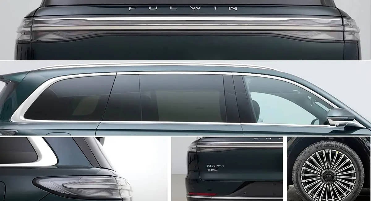 奇瑞風云 T11 CEM 的外觀展現出剛正大氣的風格,垂瀑式前格柵極具氣場,側面配備了大量鍍鉻飾條,整車線條平直流暢。其外形尺寸為長 5205mm、寬 1998mm、高 1800mm,軸距 3120mm,前輪距 1704mm,后輪距 1706mm,前懸 945mm,后懸 1140mm,接近角與離去角均為 18 度。