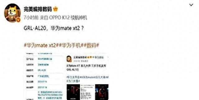 但前兩天我刷到一個消息,是真的讓我停下來仔細看了幾分鐘——華為Mate XT2入網了,三折疊回來了。
