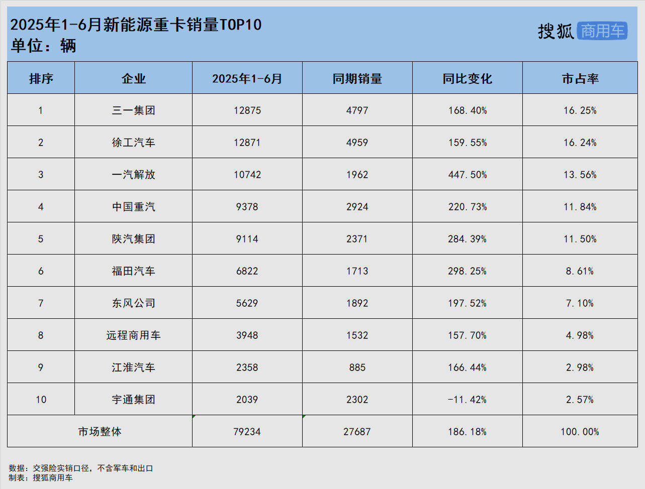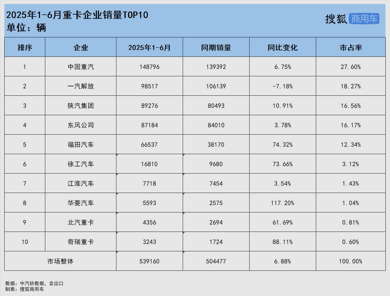 重汽穩居行業第一 東風緊跟陜汽 華菱翻番增長