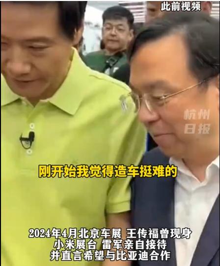追溯至2024年4月北京車展,王傳福曾現身小米展臺,雷軍親自接待并曾直言希望與比亞迪合作。而小米SU7標準版搭載比亞迪刀片電池,雙方已有合作基礎。