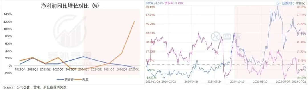 一個是電商基本盤企穩后向著“大消費+AI”平臺進擊,另一個是高增長神話隨著電商不再“唯低價論”走向終結。