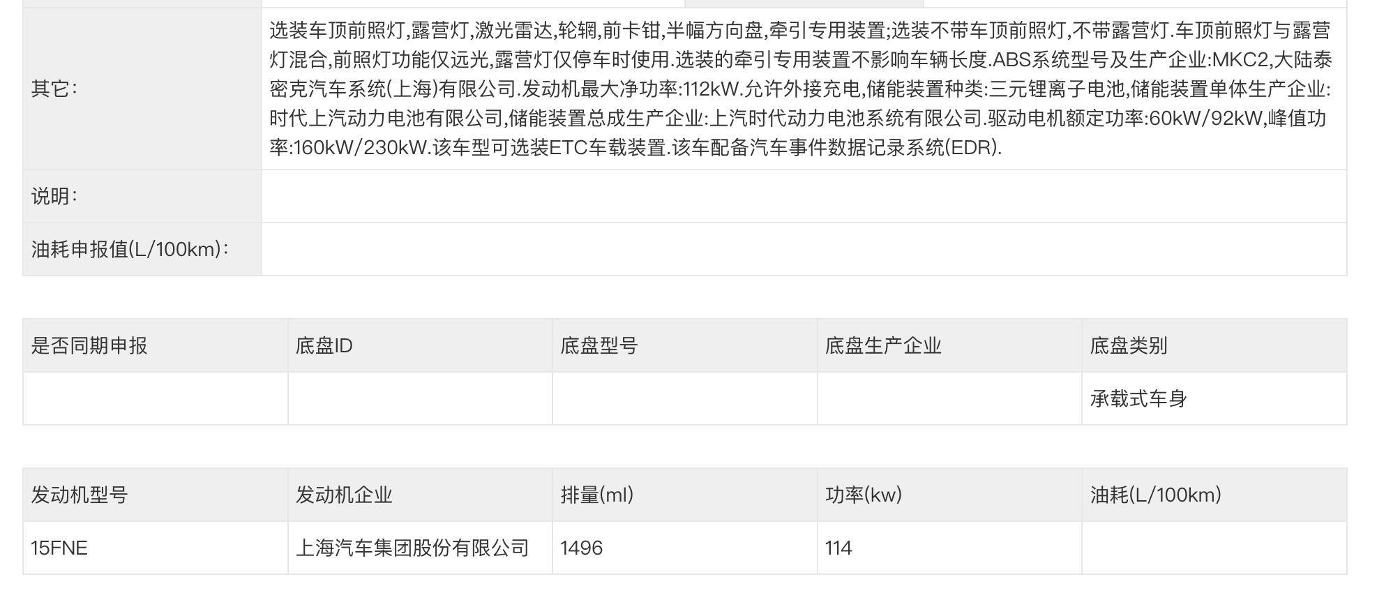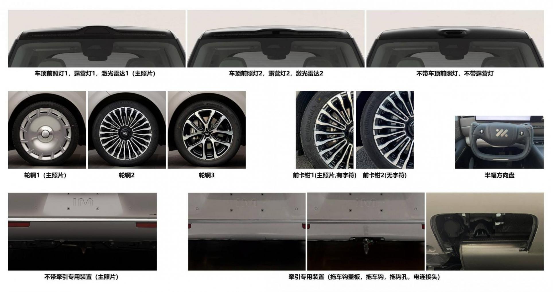 申報圖有一個細節:車頂除了激光雷達之外,還會提供車頂星光前照燈、露營燈的選裝。
