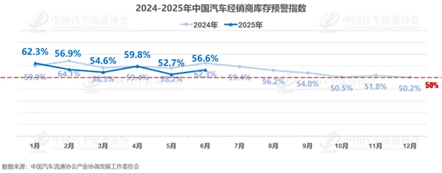 6月,汽車經銷商庫存預警指數達到56.6%,連續多月高于榮枯線。5月末,全國乘用車庫存總量已達345萬輛,同比增長16萬輛,創下近兩年新高。