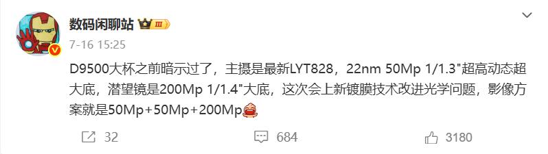 近日,數碼博主數碼閑聊站再度曝光了一款新一代旗艦手機的具體鏡組規格,根據爆料內容以及評論區內容來看預計為 vivo X300 Pro。