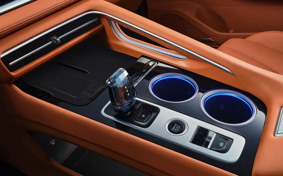 實(shí)體按鍵復(fù)活!中控臺(tái)搞了個(gè)“拱橋半包圍”,空調(diào)按鍵保留實(shí)體鍵,盲操不費(fèi)勁。擋把直接上3D鐳雕水晶,檔次提升了。