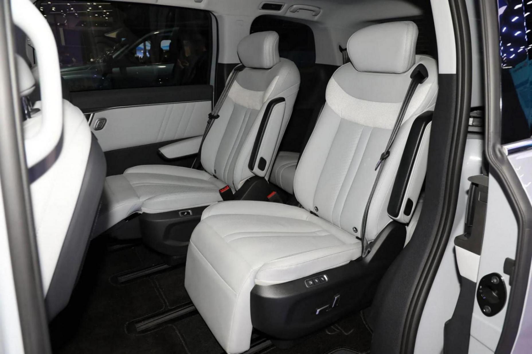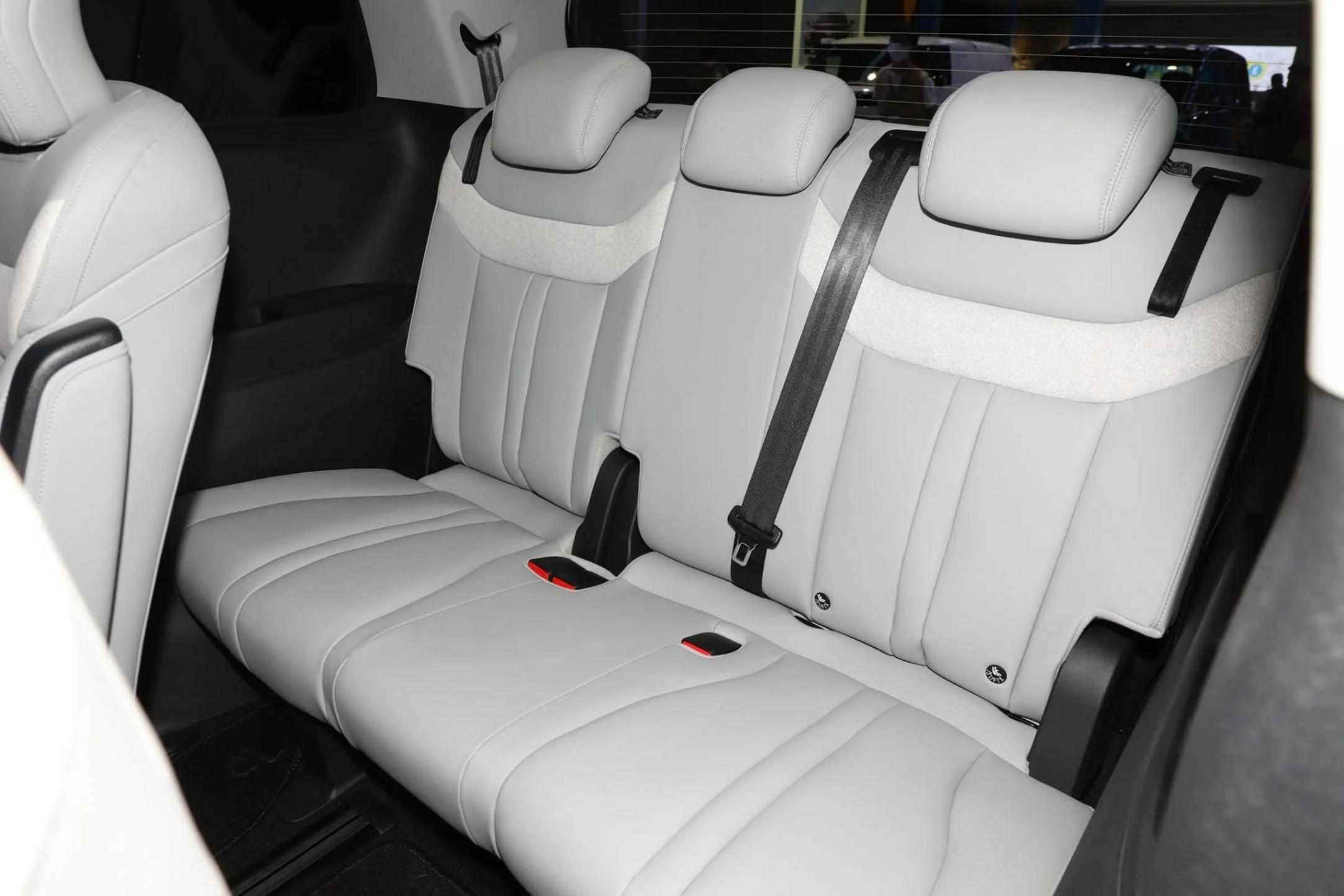 空間方面,該車提供2+2+3的7座布局和2+1+3的6座布局,說實話,6座布局感覺有些奇怪,僅在7座車型的基礎上拆了一張座椅,倒不如2+2+2的6座布局來得實在。該車的腿部空間還算寬敞,按照車型的不同,第二排座椅支持靠背調節、左右調節、前后調節和腿托調節,還帶有座椅加熱功能和后排小桌板。