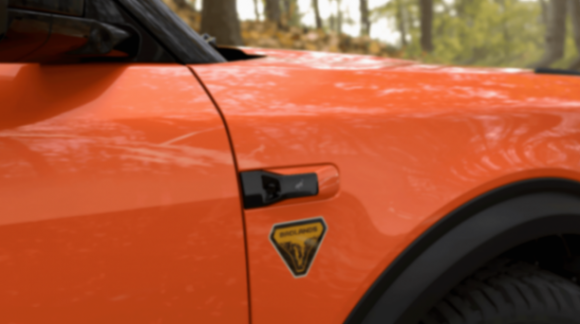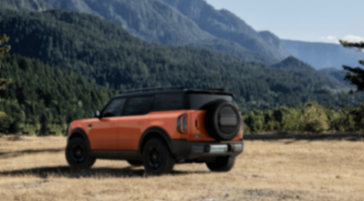 挺拔的車身姿態、利落的肩線、飽滿的輪拱,搭配前格柵上可點亮的“BRONCO”字標與數字化大燈相連,兼顧了烈馬經典元素和電動車的炫酷。尾部設計同樣是方盒子的常見元素,側開門配合外掛式的備胎。這種組合既是對傳統越野車經典元素的致敬,也為整車增添了個性化特質。