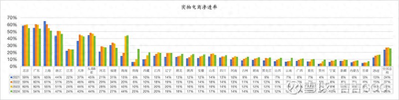口徑標注:實物電商滲透率的計算方式為實物商品網上零售額與社會消費品零售總額之比,數據來源于各省統計公報。