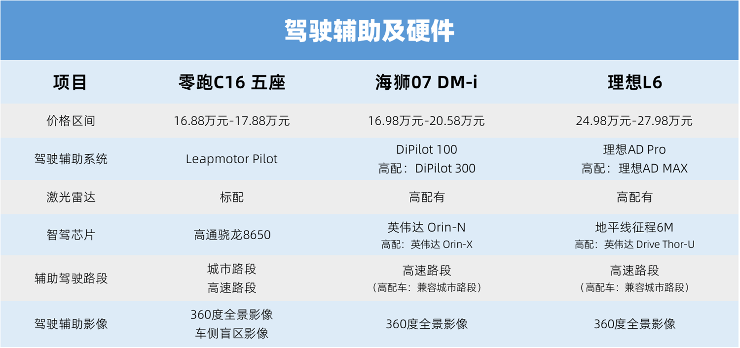 在激光雷達的輔助下,零跑C16已經完全打通了高速和城市的領航輔助駕駛功能,其他的車型基本上都是高配車才有城市領航輔助。當然,零跑C16可以說是有后發優勢,就看后期其他對手采用什么的策略了。