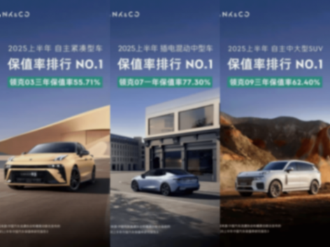 領克150萬輛的含金量,首先體現在價格上。2025年5月,領克品牌加權均價達18.9萬元,超越眾多傳統合資品牌。而保值率是檢驗品牌價值的試金石,根據《2025上半年中國汽車保值率研究報告》,領克品牌三年保值率達54.58%,9款車型躋身細分榜單前十,其中、07、09分別在各自細分市場登頂保值率冠軍。