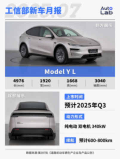 尺寸方面,新車相比5座版Model Y要大了一圈。