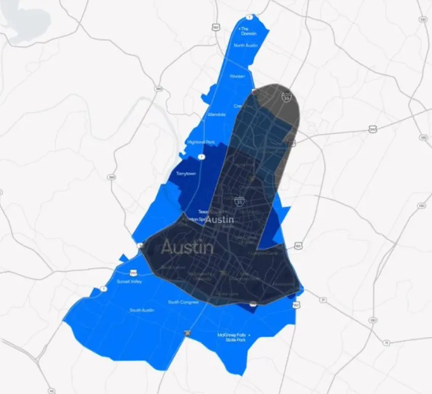 面對特斯拉已經拉滿的嘲諷,Waymo立即反擊,剛剛也擴大了在奧斯汀的范圍,直接把面積擴大到90平方英里(約233.1平方公里),剛好是7個澳門的大小。