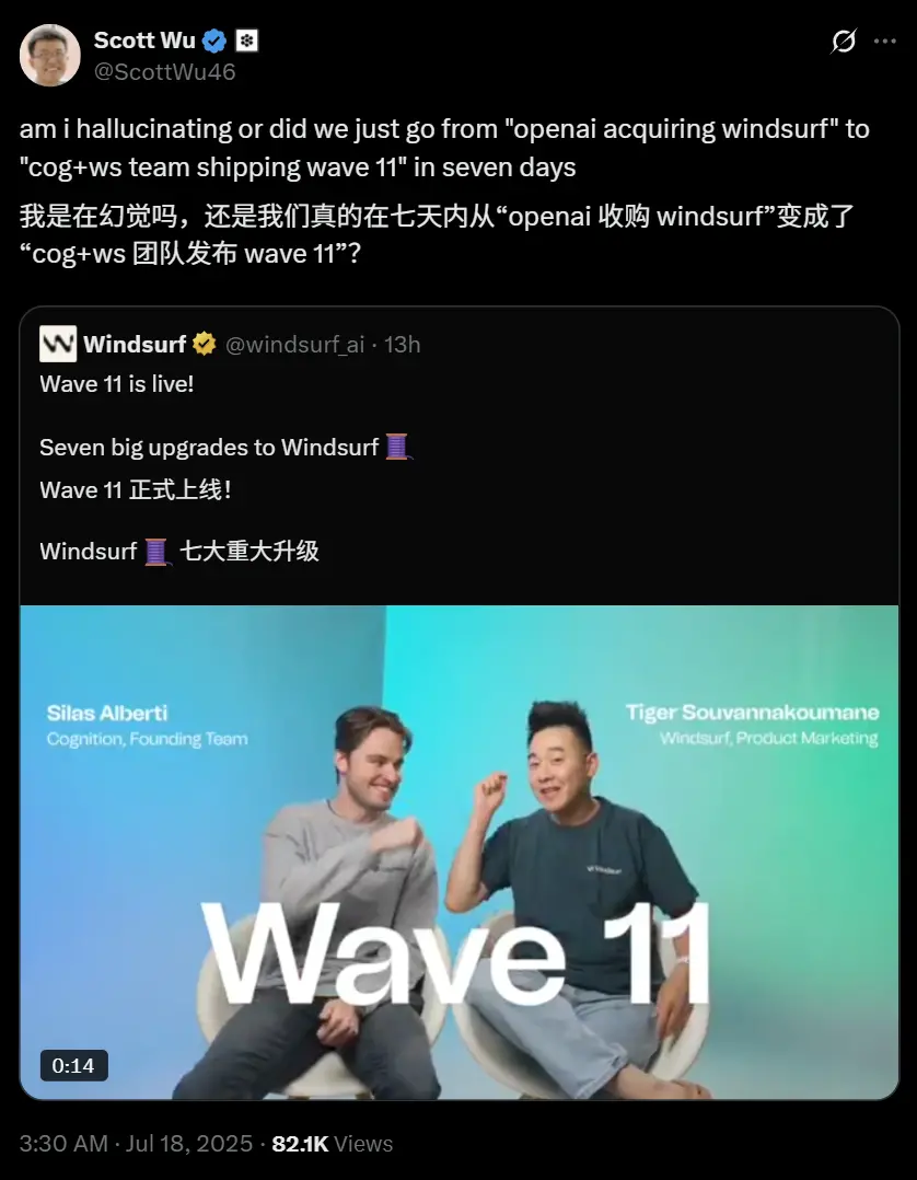 另一家AI編程公司Cognition跳出來,宣布收購Windsurf剩下的資產,包括沒有去谷歌報道的200來號員工。