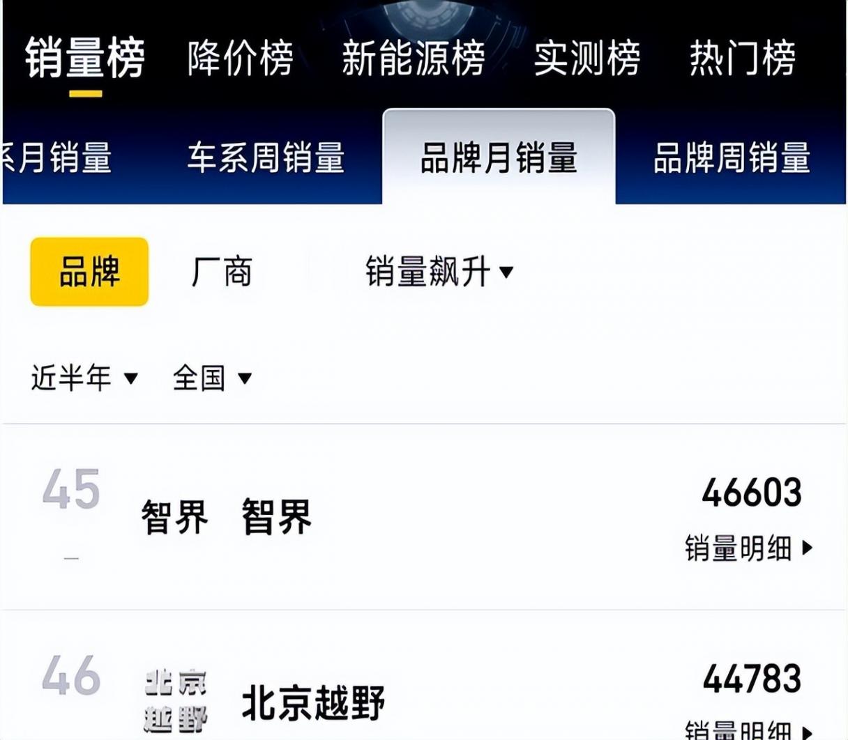 問界月銷幾萬臺穩居第一梯隊,智界享界加起來才勉強破萬,差距大得離譜。