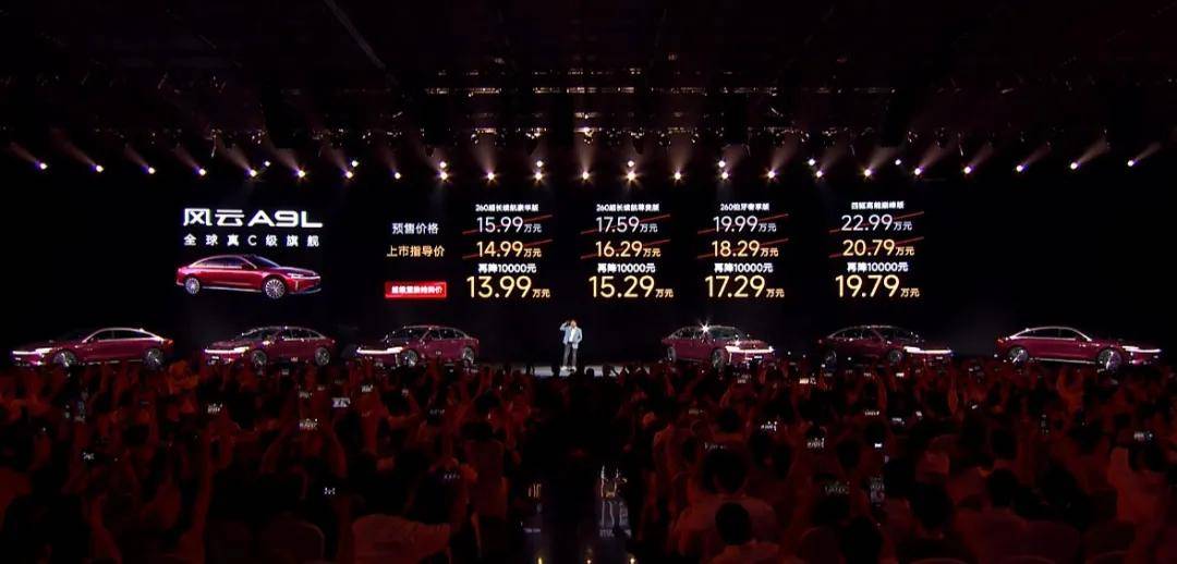 其次,戰(zhàn)略車(chē)型風(fēng)云A9L正式上市,一共4個(gè)版本,算上置換權(quán)益最低13.99萬(wàn)起。新車(chē)脫胎于投入超100億的電混E0X平臺(tái)。