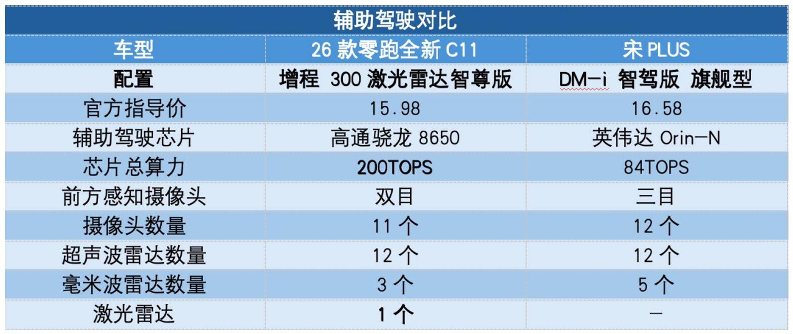 輔助駕駛能力:26款零跑全新C11配備激光雷達 宋PLUS搭載天神之眼