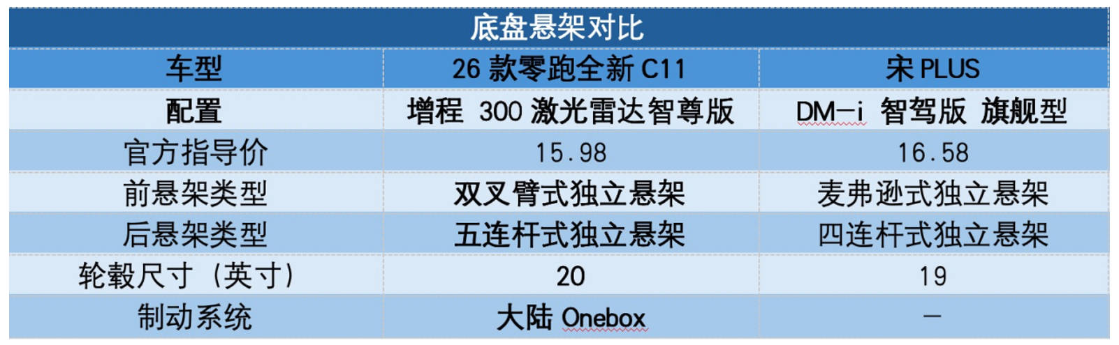 重點是,26款零跑全新C11的底盤有了質的變化,采用前雙叉臂+后五連桿懸架,并且標配了FSD可變阻尼減震器,其能在0.01秒內感知路面變化,過減速帶時自動調軟避震,提升舒適性;過彎時立刻變硬支撐車身,過彎側傾抑制提升30%,讓底盤更為扎實厚重。