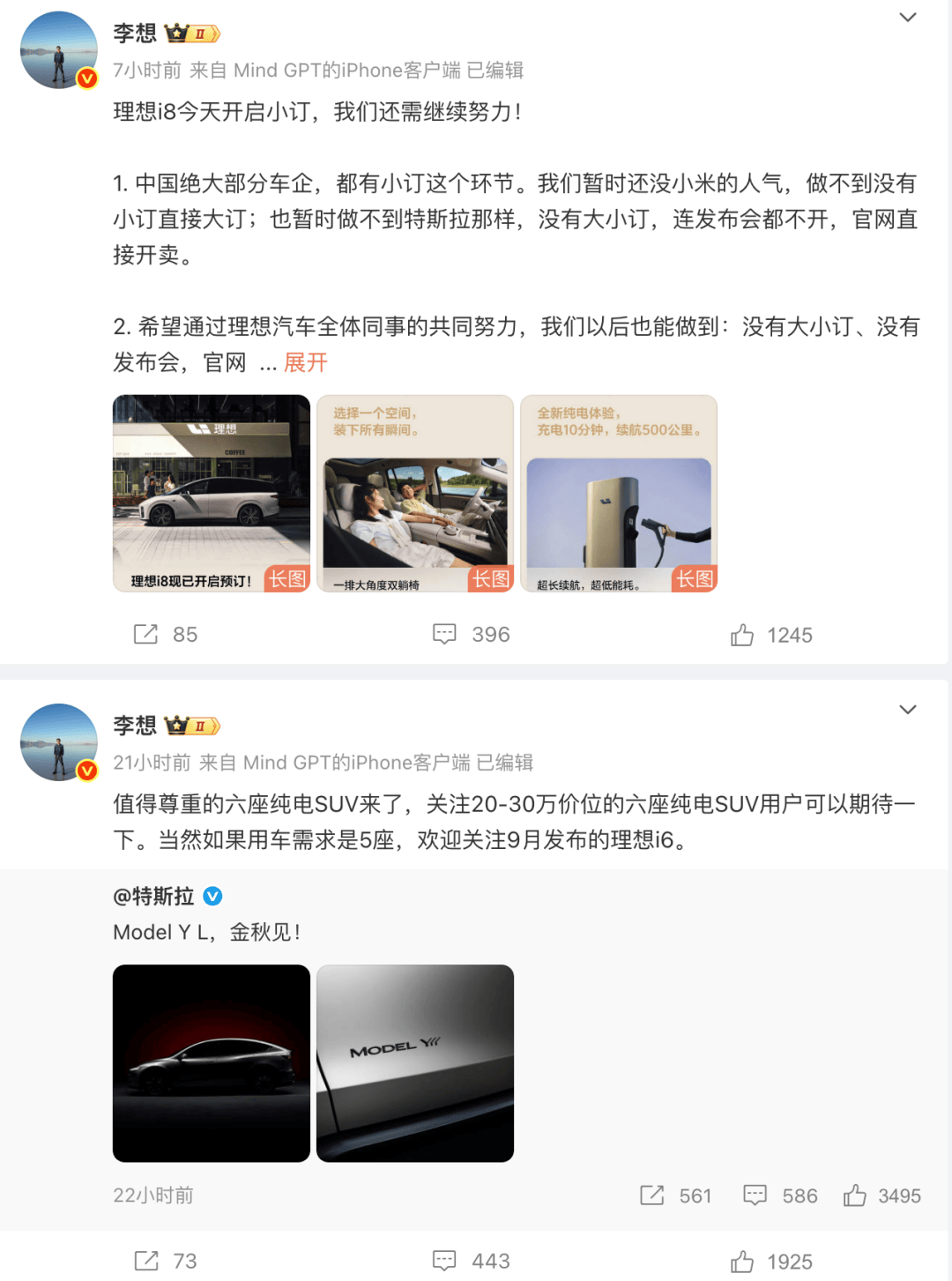 本次特斯拉官方在幾乎沒有任何預(yù)告的情況下突然官宣Model Y L無疑是個(gè)好信號,不少網(wǎng)友甚至表示,Model Y L的出現(xiàn)打得大家措手不及。值得一提的是,特斯拉宣布Model Y L即將發(fā)布之后,理想汽車CEO李想以及蔚來汽車CEO李斌均轉(zhuǎn)發(fā)了這則博文并發(fā)文。