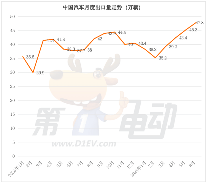 乘聯會數據顯示,2025上半年中國汽車出口量達248萬輛,同比增長10.4%。其中,新能源車出口量達97萬輛,同比增長45.6%。純電動車出口量達61.4萬輛,同比增長34.6%;插電式混合動力車出口量達33.4萬輛,同比暴漲187.9%。