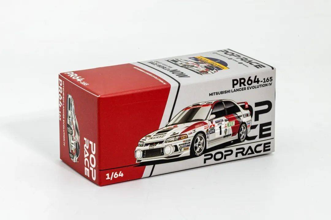 這款產品的包裝是Poprace的標準風格,因為是海外版,就沒有了拓意品牌標識,封面的手繪也是賽車形態的;這款三菱EVO是有授權的;紙盒內部是吸塑支撐。