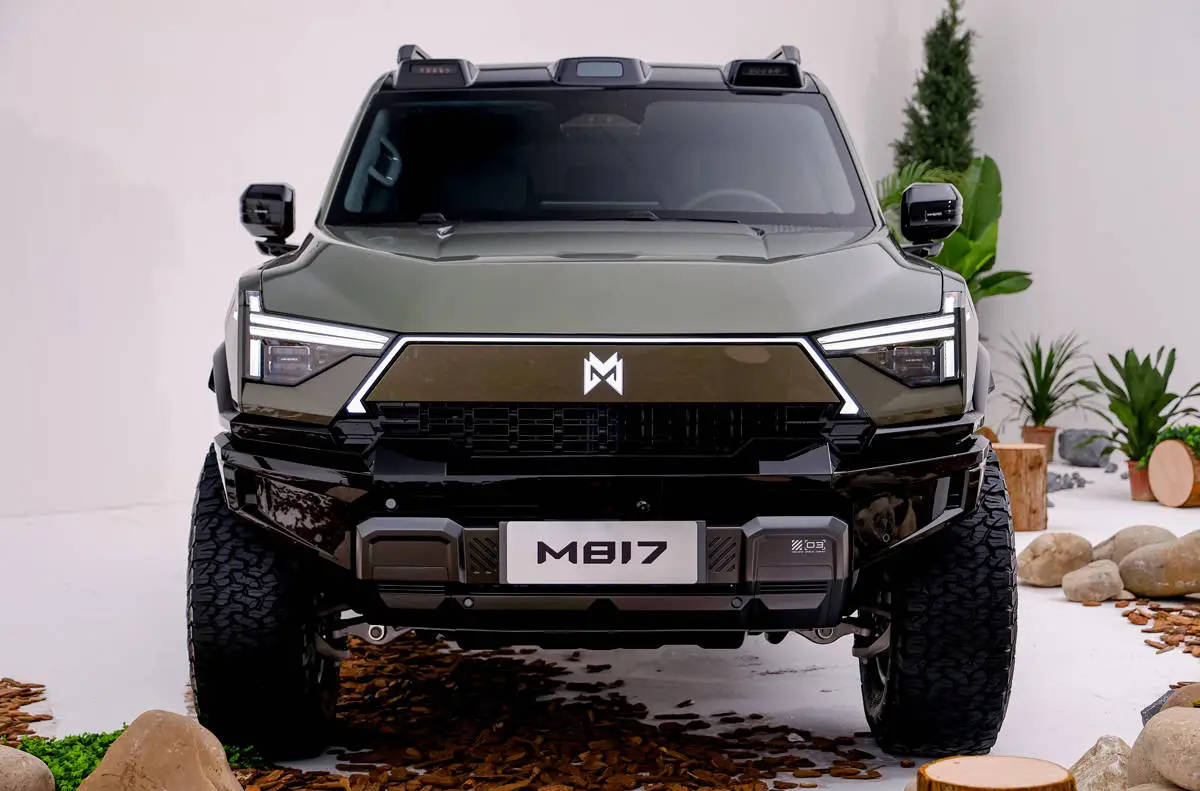 作為猛士科技品牌的全新旗艦車型,猛士M817定位于一款大型SUV,該車基于猛士智能越野架構(gòu)打造,以“讓場(chǎng)景定義功能,技術(shù)賦能體驗(yàn)”為開(kāi)發(fā)理念。在外觀設(shè)計(jì)上,采用了如今比較流行的雙前臉設(shè)計(jì)手法,提供有“分體式越野保險(xiǎn)杠”和“同色城市保險(xiǎn)杠”兩種風(fēng)格設(shè)計(jì)。