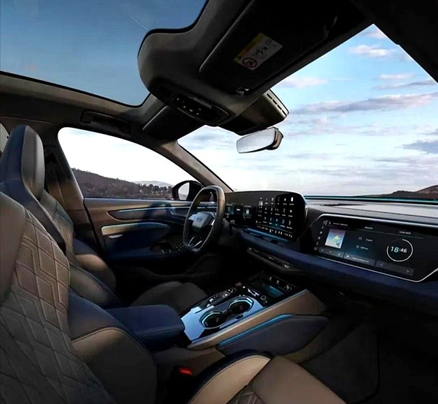 內飾是亮點,環抱式設計配三塊大屏,11.9英寸儀表加14.5英寸中控,副駕還有10.9英寸娛樂屏。