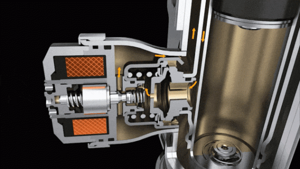 FSD屬于機(jī)械調(diào)控,而隨著電控技術(shù)的發(fā)展,有了CDC和MRC的技術(shù)路線。簡(jiǎn)單來講,CDC是通過一個(gè)精密的電磁閥,動(dòng)態(tài)調(diào)節(jié)油液路徑和流量,從而實(shí)現(xiàn)阻尼的調(diào)節(jié)。當(dāng)然,雖然CDC工作原理不復(fù)雜,但調(diào)控策略會(huì)非常復(fù)雜。