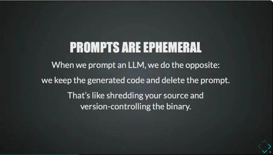 • 扔掉 prompt 只保留代碼,就像扔掉源代碼只保留二進制文件一樣;