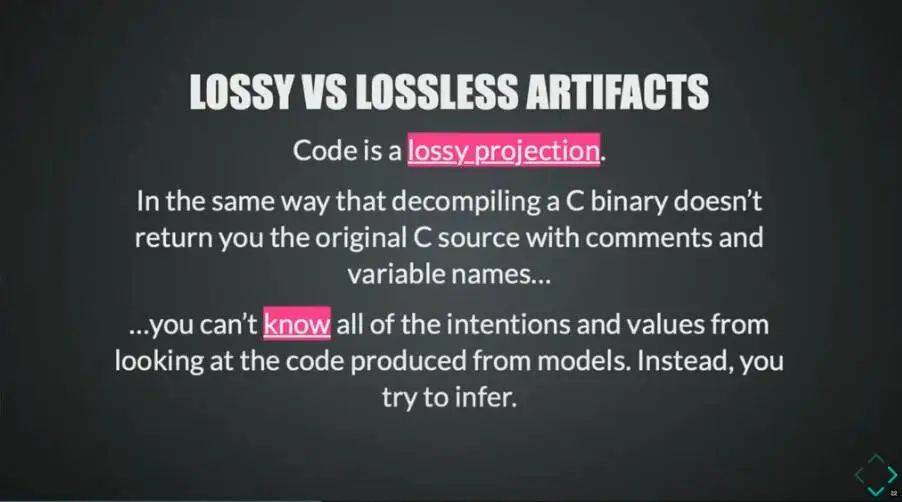 • 代碼本身并不包含最初的意圖,更像是意圖的“編譯產物”;