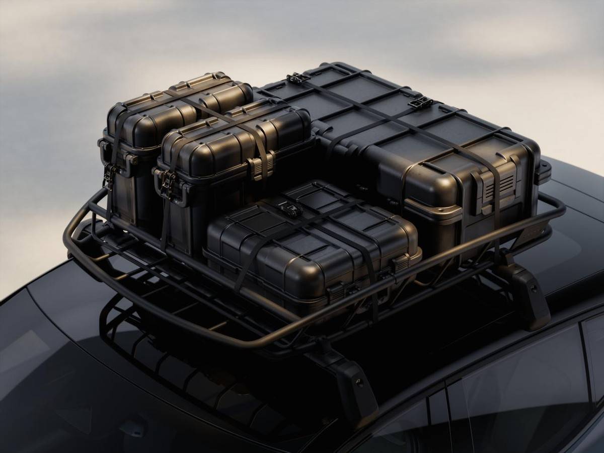 5、至高1000L的后備箱、車頂行李架導軌(可選裝置物籃,擴展68kg載物能力)、具備外放電功能