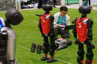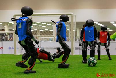 人形機器人足球比賽現場。人民網 克勞迪婭·馬爾提尼攝