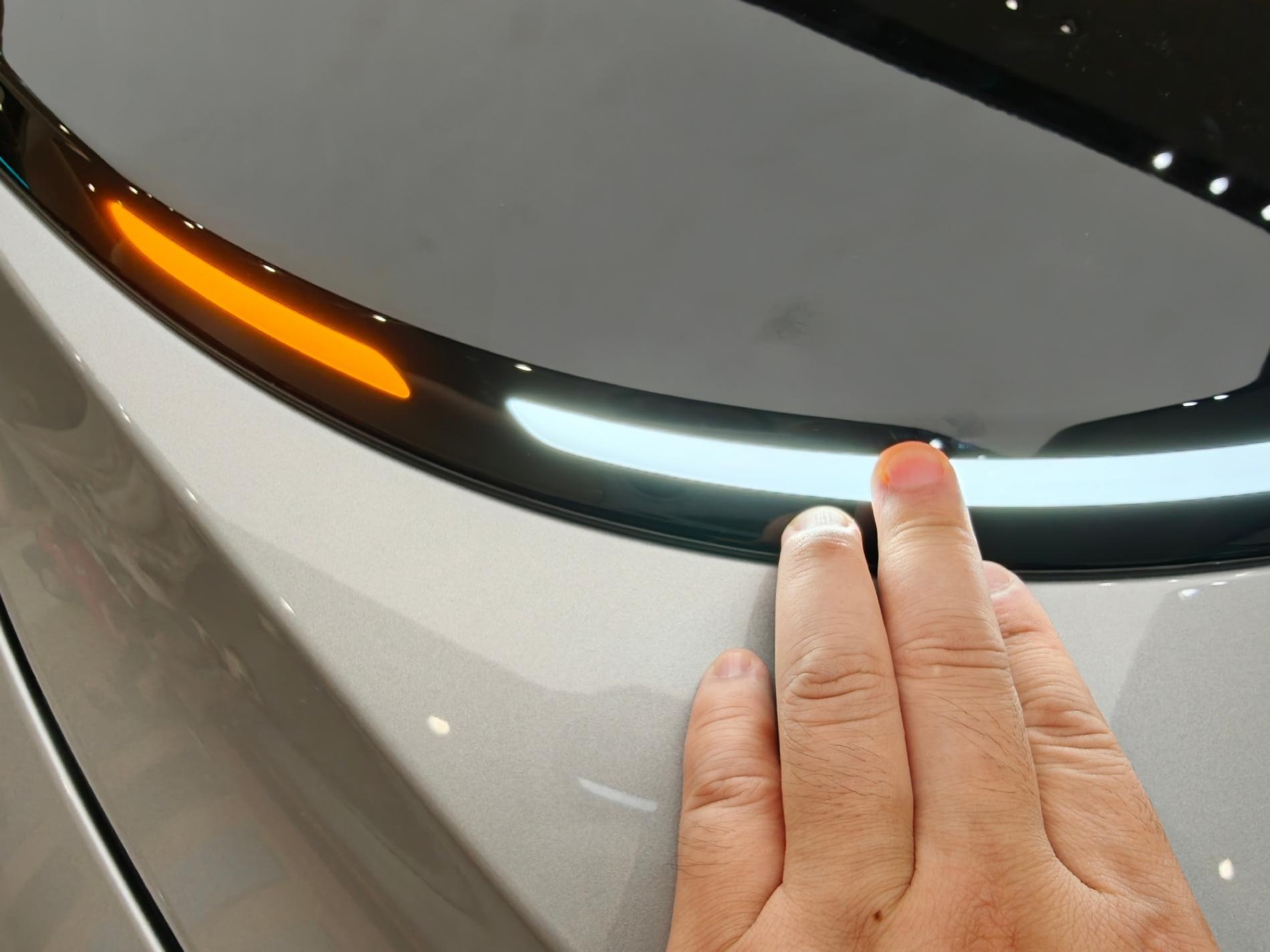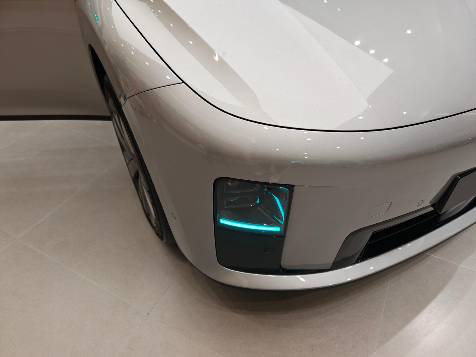 2、造型上理想i8就是MEGA的縮小版,星環(huán)燈設然不是嵌入在飾板上,而是透光設計,沒有縫隙差,非常光滑。車頭令人印象深刻的是引擎蓋上的兩條棱線,直接從車窗下沿延伸出來,整體感很強。只是快接近引擎蓋的時候,轉折感有點明顯,不是順著前臉的倒角弧度來做的。另外,前大燈也做了小藍燈設計,科技感更強。