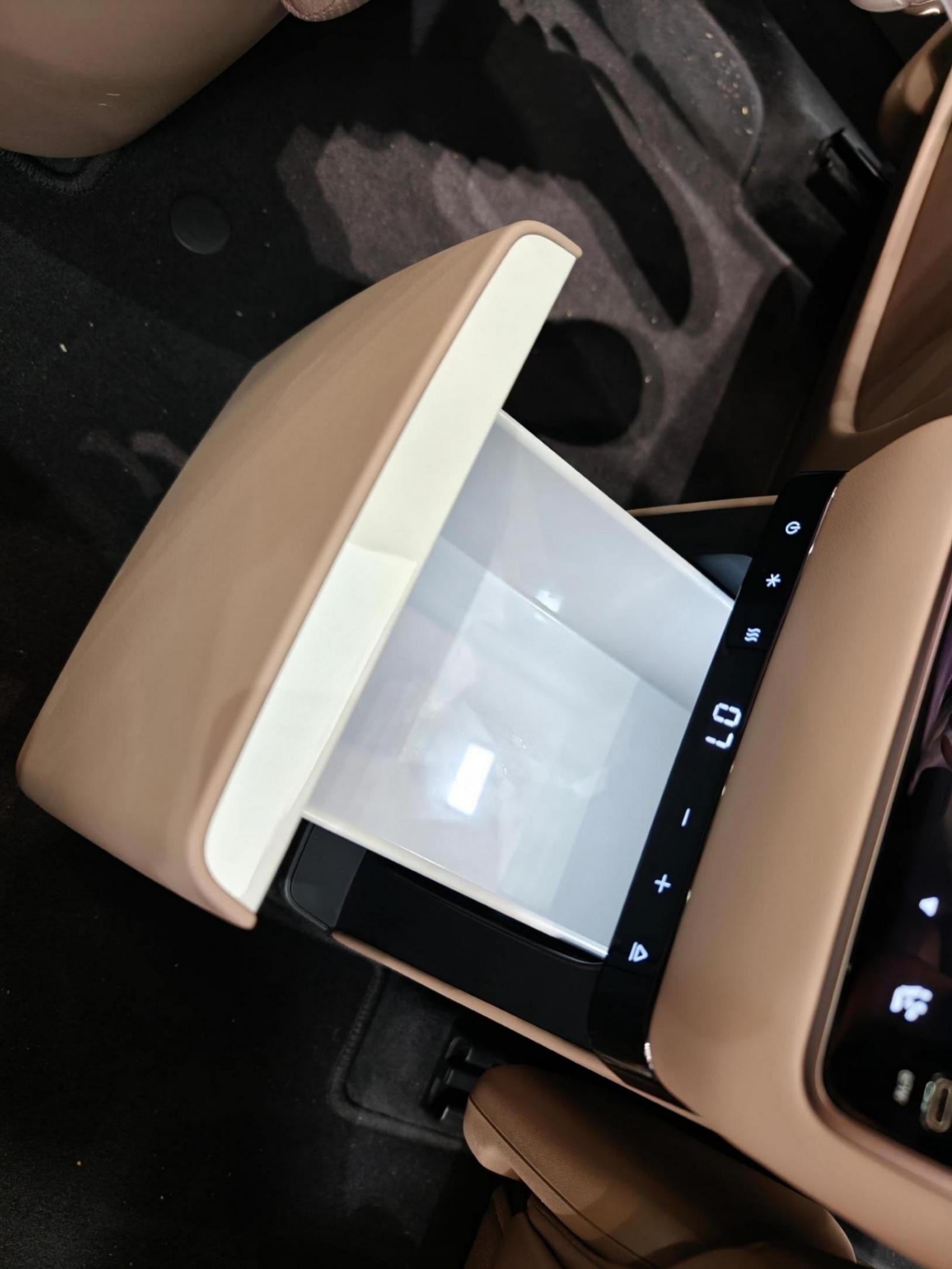 4、內飾乍一看還是理想老一套,但細節(jié)變化非常大,個人理解是理想認為L系列的內飾在人機工程上已經沒有迭代空間,只能優(yōu)化細節(jié)——一是車門板和前IP臺層次感更豐富了,至少都有三個層次,對材質、顏色、漫反射氛圍燈也進行了豐富;二是前后車門扶手采用高鐵風格的曲面設計,內外統(tǒng)一感更好;三是出風口變?yōu)殡娮映鲲L,也減少了套環(huán)飾件,更簡潔;三是相比MEGA降低了前IP臺高度,遠端增加氛圍燈,更像特斯拉的做法。