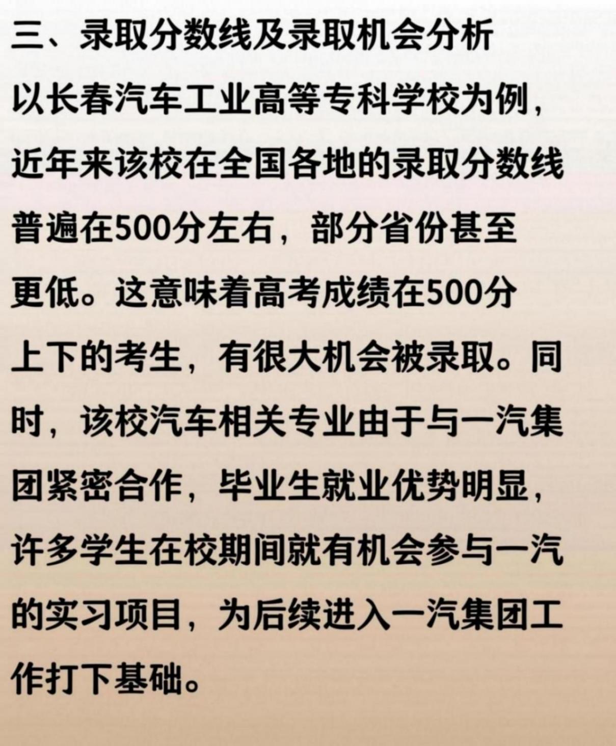 最近有不少家長和考生在問,分數不夠高,還有沒有機會進像一汽這樣的大企業?其實,大家可能不知道,吉林有一所為一汽集團量身打造的大學,不僅和企業深度合作,畢業后進入一汽的機會非常大,而且500多分就能被錄取。這對于想進國企、追求穩定工作的同學來說,簡直是“曲線救國”的好路子。今天就帶大家了解一下這所“隱藏福利”大學,看看到底值不值得報考。