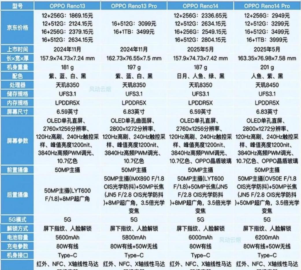 2025年5月OPPO Reno14系列發布,消費者在升級新機與省錢舊款間糾結:Reno14雖增配長焦鏡頭,但Reno13降幅大更實惠。