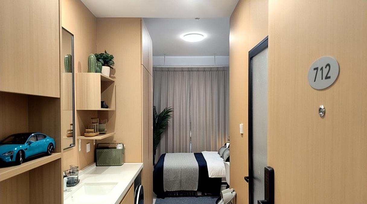 門口寫的是員工宿舍,配置單里全是酒店元素:29㎡起跳、獨立衛浴、全屋智能、班車直達、管家隨叫隨到。