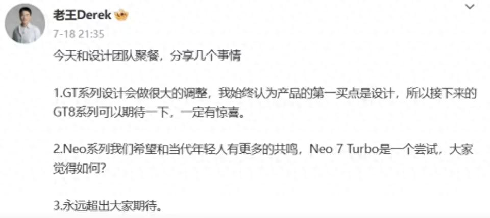 近期realme副總裁王偉在社交媒體上分享的一則團(tuán)隊(duì)聚餐后記,意外成為科技圈焦點(diǎn),短短三條信息,點(diǎn)燃了用戶對(duì)下一代旗艦GT8系列的設(shè)計(jì)期待。