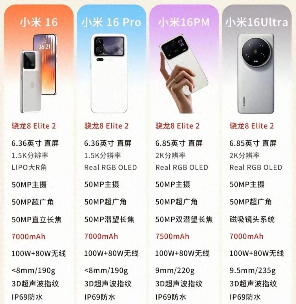 小米16系列將會有小米16、小米16 Pro、小米16 ProMax、小米16 UItra四款機型,今年將會發布前三款,16 UItra等到明年才會發布。