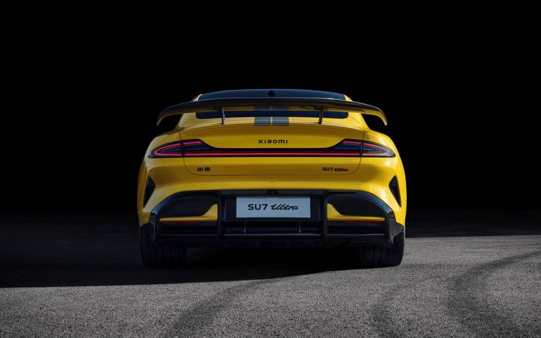 SU7 Ultra車身長度5115mm,軸距3000mm,加入前鏟、U型風刀、主動尾翼及擴散器等套件,最大下壓力達285kg,兼顧高速穩定性與低能耗。SU7 Ultra提供閃電黃、太空銀、珍珠白等5種配色,車頂、尾翼等17處采用碳纖維材質(總面積5.5m²),車頭配備超大前鏟和“U形”風刀,尾部搭載可調節主動擴散器。SU7 Ultra新增賽道拉花和碳纖維雙風道前艙蓋(可選閃電黃或太空銀),強化運動氣息。