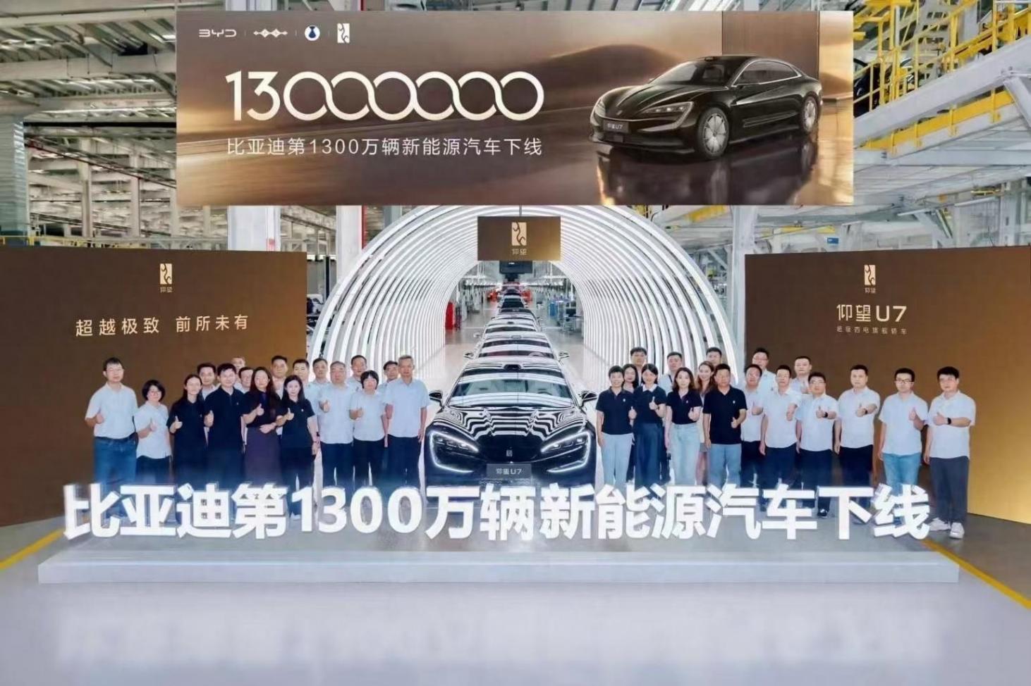 7月21日,比亞迪在深汕合作區現代化工廠舉行第1300萬輛新能源汽車下線儀式,承載這一歷史性里程碑的車型,正是比亞迪旗下高端品牌“仰望”的旗艦之作——超級四電旗艦轎車仰望U7。隨著仰望U7駛下生產線,標志著比亞迪成為全球首家達成1300萬輛新能源汽車下線的汽車企業,樹起中國新能源汽車工業發展史上的全新豐碑。